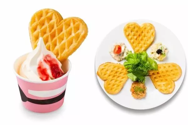 店内のレストラン&カフェやビストロには、サーモン、ニシン、エビの3種のタルタルとワッフルを合わせた過去の人気メニュー「3種の魚介タルタルのワッフルプレート」が再登場するほか、はちみつ付きのフライドチキンと合わせた“甘じょっぱい”「ワッフルチキン」、ソフトクリームにサクサクなワッフルとストロベリーソースをトッピングした「ワッフルサンデー」などがラインナップ。