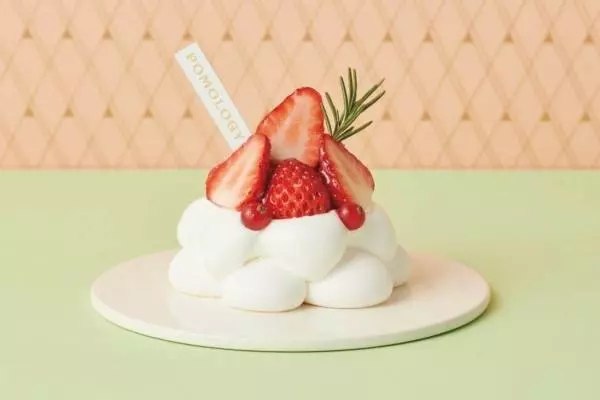 「ポモロジー」の看板メニューは、季節のフルーツを合わせた「パブロバ」。「パブロバ」は、低温でじっくりと焼きあげたメレンゲがベースのスイーツで、軽やかな食感を保つために、毎日数量限定で焼き上げている。春の季節には、フレッシュな苺をのせた「とちおとめのパブロバ」を発売する。