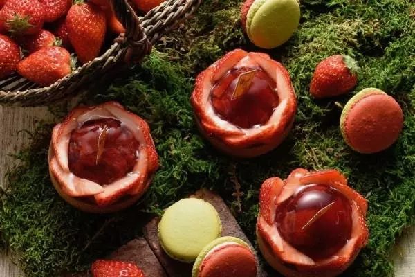 苺×ピスタチオのケーキや苺&ハイビスカスのタルトなど