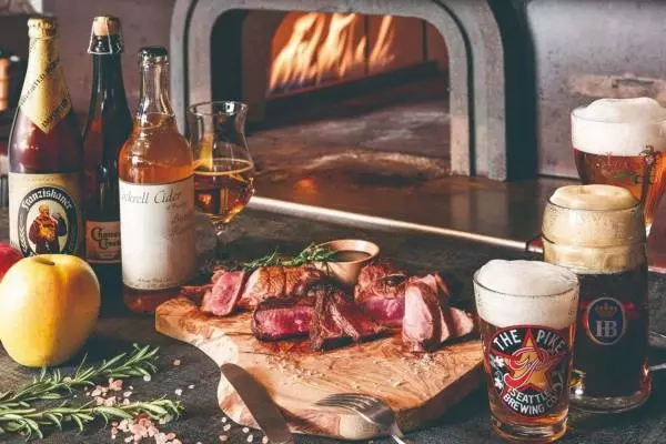 「ブラウアターフェル」は、海外ビール・ワインの輸入販売・飲食運営を行うワールドリカーインポーターズの新業態レストラン。選りすぐりの直輸入海外クラフトビールや、シアトルで流行しているクラフトハードサイダーとともに、こだわりの石窯を使い、最新の調理技術で焼き上げた肉料理や野菜、シーフードを提供する。