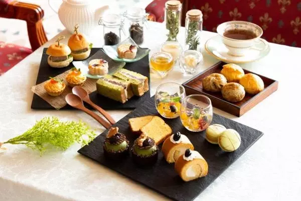 また、抹茶入りブレットを使用したサンドイッチなど、お茶の味わいを楽しめるセイボリーも用意。さらに、帆立貝と紅ズワイ蟹のムースなど、高級食材を使用したホテルならではのメニューも準備する。