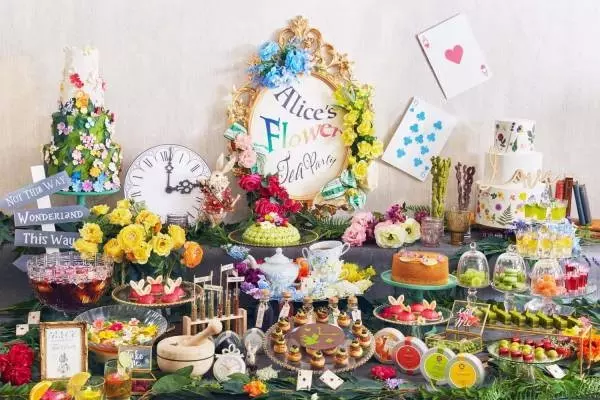 「アリスのフラワーティーパーティー ~ティースイーツコレクション~」は、「不思議の国のアリス」をテーマに、華やかなフラワーガーデンでのお茶会をイメージしたスイーツブッフェだ。