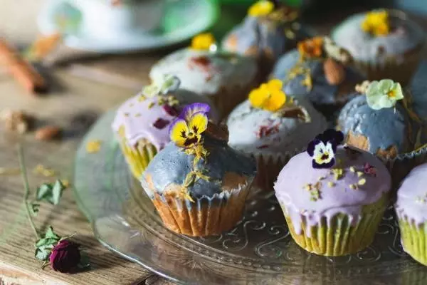 花とハーブ香る「お花のマフィン」池袋HANABARで販売、色が変わる青いハーブティーも