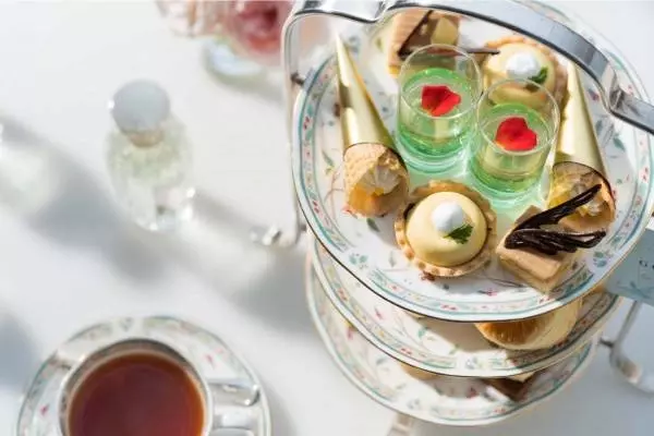 ホテル椿山荘東京×グダールのアフタヌーンティー、洋梨&ピーチの香り漂う香水「プチシェリー」を表現