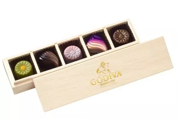 ゴディバの「東京 スーベニア コレクション “OMIYAGE”」は、“和の美”を表現した限定チョコレートを詰め合わせたアソート。和菓子のようなビジュアルの限定チョコレートには、和の素材を贅沢に使用した5種類のフレーバーを用意した。