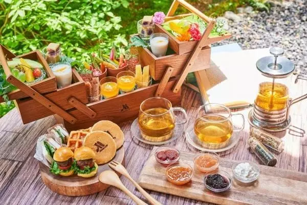 また、セイボリーには「信州産牛肉と霧下野菜のスライダーバーガー」「霧下野菜のプティサラダ」といった地産食材を活かしたラインナップを展開。なお、ドリンクはマイティーリーフ社のティーセレクション6種をはじめ、軽井沢名物・ミカド珈琲のコーヒー5種、中国茶3種をフリーフローで用意する。