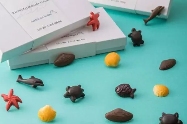 夏限定で発売されるのは、ハワイのみで展開されていた「マリンライフ チョコレート」。ボックスには、イルカやスターフィッシュ、カメなどをモチーフにした可愛らしいチョコレートを詰めた。