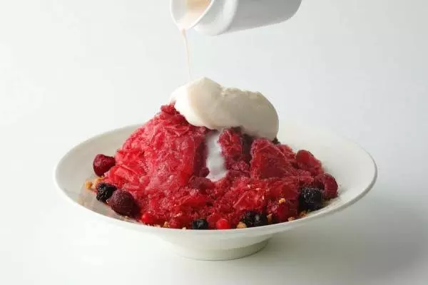 甘酸っぱいベリーと濃厚で爽やかなチーズ、そしてザクザクとした食感のクランブルのハーモニーを味わえる、まるでケーキのようなかき氷に仕上げた。