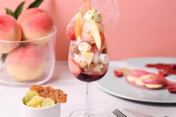 オムレットやカプレーゼにパフェ、桃尽くしの新作コース