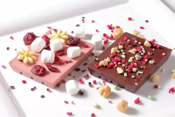 「マイ キットカット」では、3種のチョコレートから1種を選び、トッピングと持ち帰り用ボックスをカスタマイズして「オリジナル キットカット」を手作りすることができる。トッピングは、ナッツ系、フルーツ系、フォトジェニック系など全17種を用意。好みの4種をセレクトして、自由にトッピングを楽しめる。
