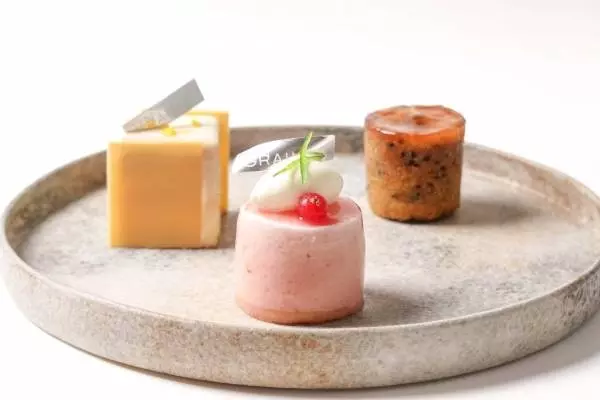 一方「ルミエール」は、紅茶とクリームチーズのムースを、キャラメルのコクが感じられるブロンドチョコレートで挟んだケーキ。ベルガモットとパッションフルーツが爽やかに香る、優しい味わいの1品に。