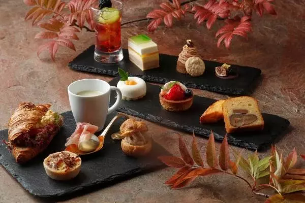 季節の食材を活かしたスイーツが楽しめると人気のニューアメリカングリル カナデテラスのアフタヌーンティー。秋の深まりとともに開催される「秋の果実アフタヌーンティー」では、巨峰、和栗、さつま芋など、秋を代表する食材をふんだんに使用したメニューを用意する。