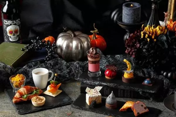 ホテル雅叙園東京「ハロウィンナイト」テーマのアフタヌーンティー、“黒い森”チョコレートケーキなど