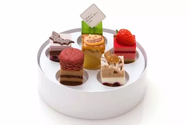 「デギュスタシオン ハロウィン」は、コウモリやかぼちゃのおばけなど、ハロウィンならではの見た目のケーキを詰め合わせたボックス。抹茶のバタークリームとガナッシュにキルシュを効かせた「バンブー」のほか、赤いフルーツを組み合わせたモンブラン「マロン フリュイ ルージュ」や、洋梨のコンポートと濃厚なキャラメルクリームをダコワーズ生地で挟んだ「ポワール キャラメル」など、秋ならではの味覚も楽しめる。