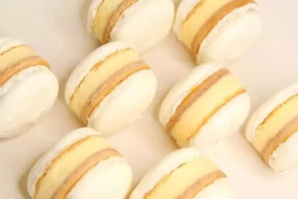 今回は、チーズケーキをマカロンでサンドした「マカロンチーズケーキ」が仲間入り。クリームチーズとパルメザンチーズを使用したチーズケーキは、程よい塩味と酸味が後を引く味わいで、甘いマカロンと好相性。マカロンのサクッとした食感と、ベイクドチーズケーキの濃厚でなめらかな口当たりもマッチしている。