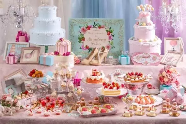 「マリー・アントワネットのストロベリー宮殿~sweets jewelry~」は、フランス王妃“マリー・アントワネット”をイメージしたスイーツイベント。苺をメインに、紅茶や薔薇といったヨーロッパを彷彿とさせる素材も取り入れて、まるで宝石のように美しいスイーツを展開する。