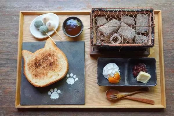 「京都ねこねこ」のねこ型食パンを“七輪”でトーストできる朝食メニュー、みたらし団子もセットに