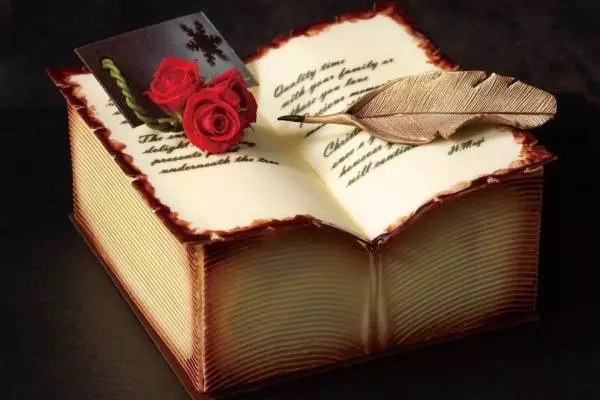 本を再現したユニークなビジュアルが目を惹く「タリーナ」。チョコレートで出来たページの下には、“ピスタチオ&マスカルポーネ”と“キャラメル&ショコラ”の2種の味わいを忍ばせた。