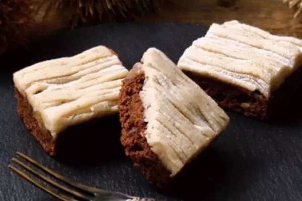 一方「モンブランケーク」は、「ベル アメール」の新作スイーツ。和栗を混ぜ込んで焼き上げたケーク生地には、ビターチョコとマロンペーストを使用した。トップにはカシスのコンフィチュールと自家製マロンクリームを重ねている。