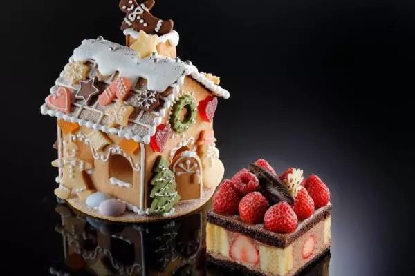 シェラトン都ホテル大阪のクリスマスケーキ、"クッキーのお菓子の家"や"大粒いちごケーキ"