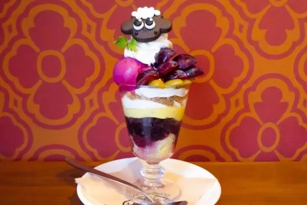「ひつじのショーン」カフェ秋限定メニュー、ベビーショーンのぶどうパフェ&かぼちゃのモンブランプレート