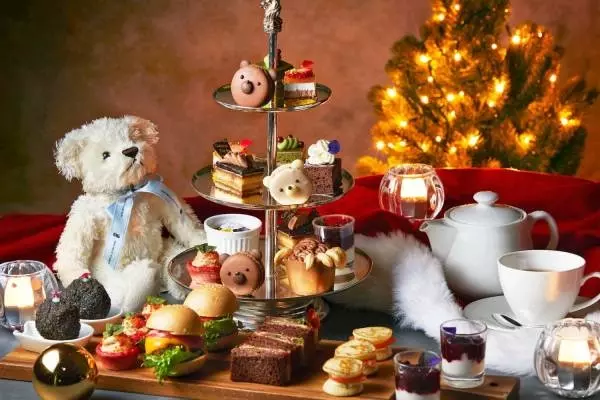 「クリスマス テディベア ティーパーティー」は、テディベアとヨーロッパのクリスマスをテーマにしたアフタヌーンティー。クマの顔を象った愛らしい「ベアーマカロン」や、ナッツでクマの爪を表現した「クマの手バターケーキ」といった遊び心に溢れたスイーツや、「オペラ」、「ガトーショコラ」といった定番チョコレートスイーツ、斬新な素材の組み合わせが楽しい「ブラックペッパーチョコレートプリン」「スパイスチョコレートスープ」といったスイーツ12種類が勢揃いする。