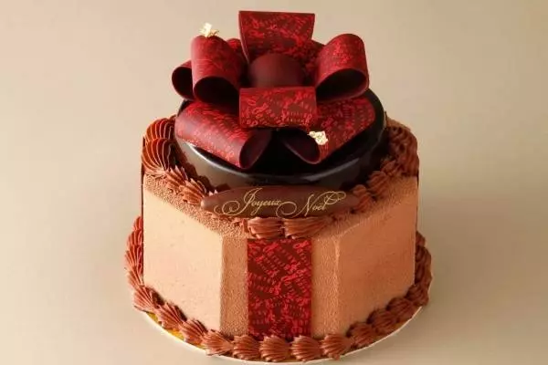 また、リボンをあしらい“プレゼントボックス”のように見立てた「ガトー カドゥ ユイット ノエル」もチェック。バニラとキャラメルのショコラムースを基調とした濃厚なチョコレートケーキには、アップルティーの香りがするショコラムースを忍ばせて、香りのアクセントを加えた。
