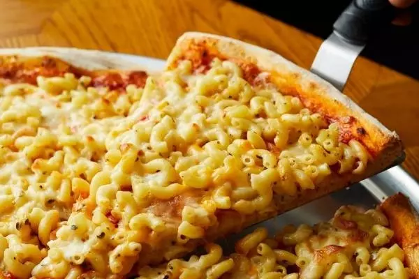 店内では、ボリューム満点のビザメニューを、1スライスとホールで展開。照り焼きチキン、半熟卵、ほうれん草、海苔等をのせた日本オリジナルの「トウキョウ」をはじめ、3種のチーズと特製トマトソースをあわせた「チーズ」、本国のマカロニ&チーズのレシピを再現した「マカロニ&チーズ」などをラインナップする。
