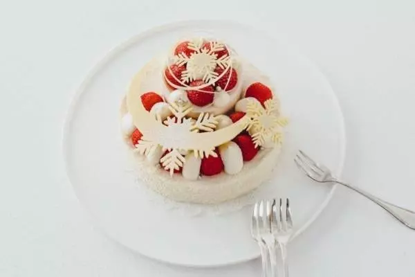 “雪の結晶”モチーフを飾った2段ケーキなど