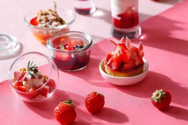 苺を使用したスイーツを堪能できる「ストロベリー デザートブッフェ」は4カ月の期間中、1カ月ごとにメニューを変更し、合計100種類以上のスイーツを展開。ラインナップは、毎年開催されているブッフェで特に人気の"グラススイーツ"や、抹茶を使用した和テイストの一品、焼き菓子などが用意される。