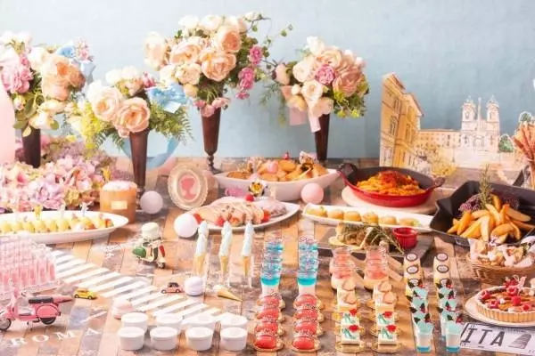 2020年のクリスマスに向けて開催される今回のブッフェ企画のテーマは、11月より開催中の「プリンセスアフタヌーンティー~ローマの休日~」とリンクした“ローマの休日”。その世界観を鮮やかなピンク&ブルーを中心に表現したスイーツの数々を、心ゆくまで堪能出来る。