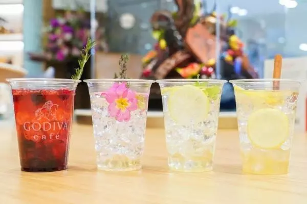 店頭では、ゴディバ人気のチョコレートドリンク「ショコリキサー」はもちろんのこと、オリジナルのチョコレートドリンクを多数ラインナップ。「インフィニミックス」というこだわりのマシーンで仕上げた、カカオミルクやカカオカフェラテをホットまたはアイスで、さらにのどこしの良い炭酸ドリンク「カカオソーダ」などのドリンクも展開する。