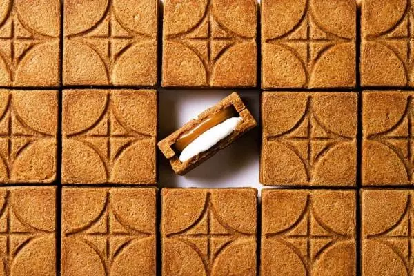 年間2,500万個を販売するバターサンド専門店「プレスバターサンド」の新作は、ホワイトチョコレートを使用した新フレーバーだ。ミルキーな甘さのホワイトチョコレートを練り込んだチョコレートキャラメルをサクサクのクッキー生地でサンドしている。