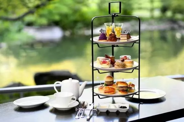 大阪「太閤園」日本庭園を眺めるアフタヌーンティー、ルビーショコラのスイーツや黒毛和牛のセイボリーなど
