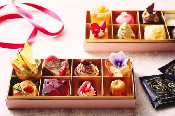 選べるセットは、全15種のスイーツ&セイボリー、2種のスコーン、クロテッドクリーム&ジャム、TWGのティーパック2袋でティータイムを堪能出来るスタンダードセットと、5種のスイーツと2種のスコーン、クロテッドクリーム&ジャム、TWGティーパック1袋がセットになったプチセットの2種類。