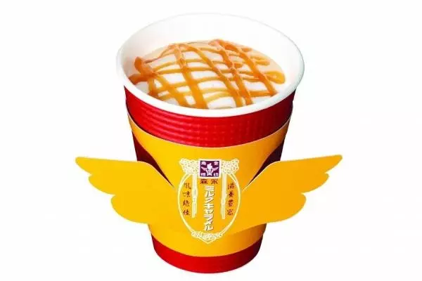 「森永ミルクキャラメルラテ」の購入者には各店舗先着20名限定で、「天使のふわラテ」専用スリーブもプレゼント。また、アイス派の人におすすめの「森永アイスミルクキャラメルラテ」も発売される。