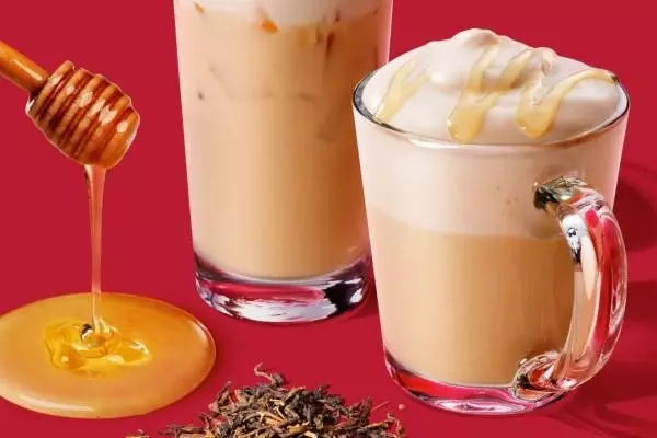 「ジョイフルメドレー ハニー ムース ティー ラテ」は、ブラックティー・ウーロン茶・ジャスミンティーをベースに、アプリコットの風味を加えて華やかに仕上げた冬季限定のブレンドティー「ジョイフルメドレー」を主役にしたティーラテ。これにミルクティーで作るハニームースをたっぷりとトッピングすることで、ミルクティーの異なる2つの食感が楽しめる新感覚のティーラテに仕上げている。