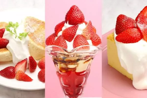 特にスイーツメニューは、自慢の生クリームとたっぷりのいちごで人気の「いちごパフェ」、美しいフルーツの断面が食欲をそそる「フルーツサンド」、しっとり&ふわふわのスフレパンケーキにフレッシュないちごと生クリームを合わせた「たっぷりいちごのスフレパンケーキ」など充実のラインナップ。