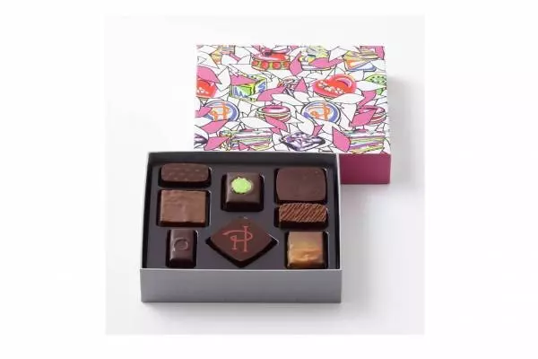 また、ナッツ好きにはナッツ系ショコラの詰め合わせ「プラリネ ショコラ」がおすすめ。同ボックスには、新作「アカジュー」に加え、杉の実を使った香ばしい新作ショコラ「アンフィニマン プラリネ ピニョン ド セドル」も詰め合わせた。