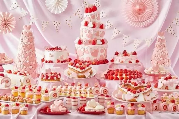 グランドニッコー東京ベイ 舞浜が今回提案するのは、女性の憧れが詰まった“夢の世界”をイメージしたスイーツブッフェ。真っ赤なイチゴとパステルピンク、ハートモチーフを散りばめたストロベリースイーツの数々が楽しめる。