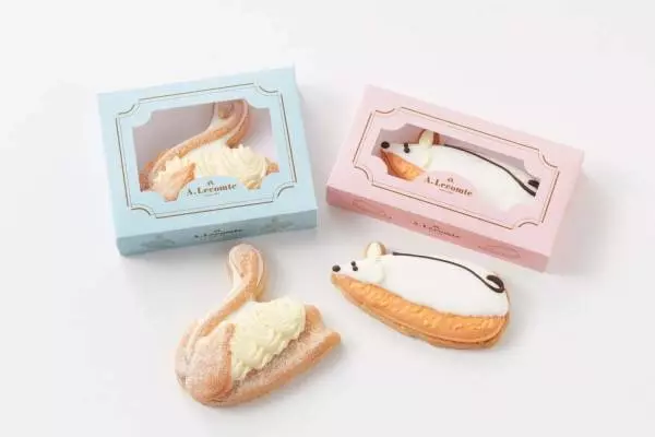 「ビスキュイ デコレ」は、ルコントを代表する子ねずみ型シュークリーム「スウリー」と白鳥型の「スワン」をモチーフにした、ザクッとした食感のアイシングクッキー。クッキーの見た目はもちろん、小箱もペールトーンでかわいらしく仕上げた。