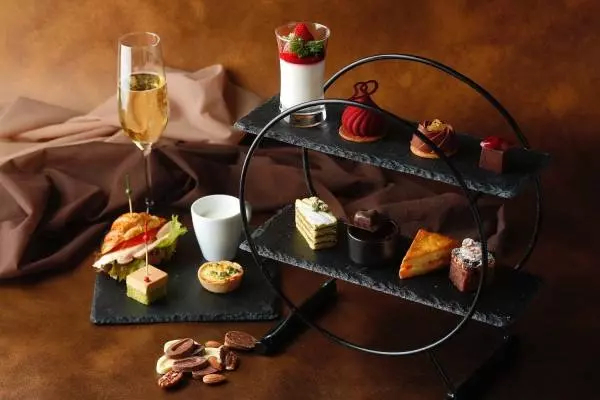 「バレンタインアフタヌーンティー」は、多彩なチョコレートスイーツを存分に楽しめるアフタヌーンティーだ。スイーツには、フランボワーズショコラやオレンジノワゼット、クレームブリュレショコラ、ピスタチオのオペラなど、風味や食感に変化をつけたメニューがラインナップ。また、フォアグラパテと抹茶プルマンなど、スイーツの甘みや酸味を引き立てるセイボリーも一緒に楽しめる。