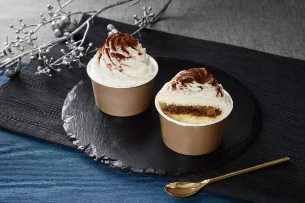新作は、チョコレートにフォーカスした2つの“プチ贅沢”スイーツ。「ウチカフェスペシャリテ 雪めくティラミス」は、ふんわりソフトなマスカルポーネホイップを重ねたキュートなカップスイーツだ。