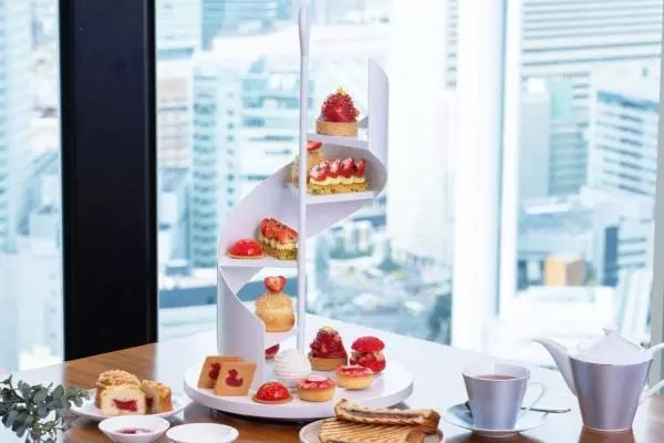 コンラッド大阪“螺旋階段のティースタンド”で楽しむ苺アフタヌーンティー、モンブランタルトなど