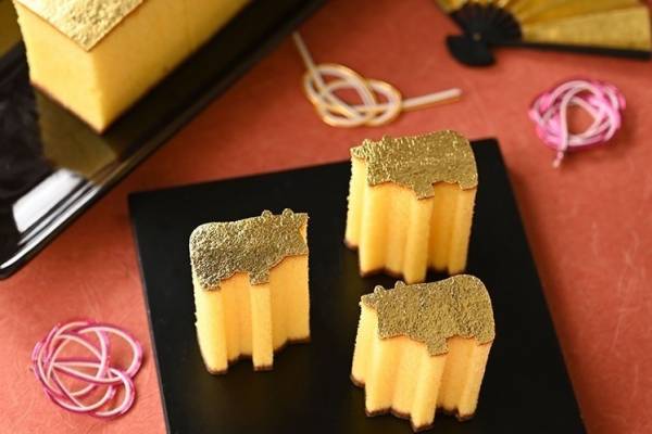 型抜きを楽しめる“牛”モチーフの金箔カステラ