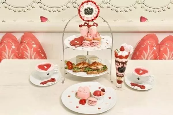「ロックオンハート・アフタヌーンティーセット」は、ハートモチーフやピンクカラーが目を引くアフタヌーンティーセット。