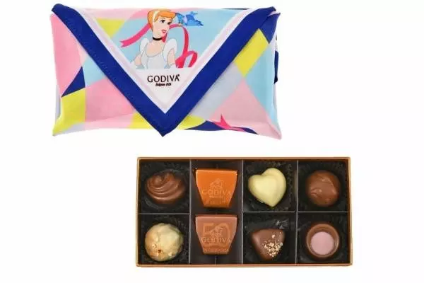 ゴディバとディズニーストアの共同企画によるチョコレートが発売されるのは、今回が初めて。魔法にかかりキラキラと輝く「シンデレラ」と、野獣の優しさに心ときめく「ベル」の描きおろしイラストを採用した、チョコレートの詰め合わせを展開する。