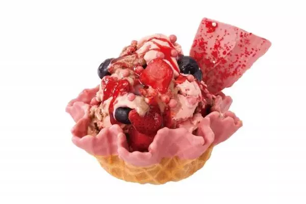 さらに、“ルビーチョコレート”をコーティングした「ルビーチョコワッフルボール」と、ラズベリークランチとアラザンを組み合わせ店舗で手作りした「ルビーバークチョコ」を組み合わせ、“ルビーチョコレート”そのものの美味しさを堪能できる仕上がりとなっている。