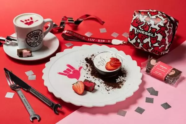 ディーゼル(DIESEL)が手がけるカフェ「グロリアスチェーンカフェ(Glorious Chain Café)」から、アート・キャンディ・ショップ「パパブブレ(papabubble)」とコラボレーションしたバレンタイン限定メニューが登場。2021年1月20日(水)から2月14日(日)まで、グロリアスチェーンカフェ渋谷と横浜ベイサイドにて提供される。