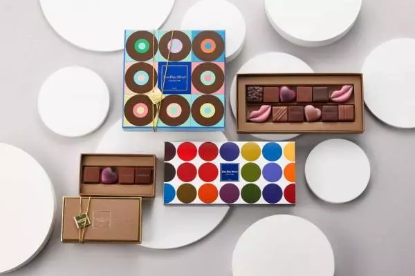「サロン・デュ・ショコラ 2021」限定コレクションは、ジャン=ポール・エヴァンが2020-2021年に掲げている<LES ANNÉES POP(ポップアートの時代)>をテーマに展開。1960年代初頭から1970年代の陽気な音楽や芸術をイメージしたポップなデザインのボックスに、バレンタイン限定ボンボンショコラと「サロン・デュ・ショコラ 2021」限定のボンボンショコラを詰め込んだ。